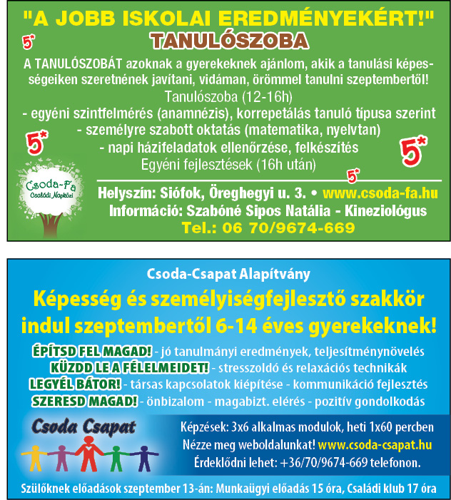 A Csoda-fa Családi Napköziben engedékenyebb és igényesebb légkörben a gyerekek negatív reakciói módosulhatnak. A napi feladatok (írásbeli, tanulnivaló) elvégzése mellett figyelembe vesszük a tanulói személyiséget, fejlesszük a gyerek önmagáért érzett felelősségét, ill. megtanítjuk az eredményes tanulás csodáira (motiváció, koncentráció, stresszkezelés, memóriafejlesztés).